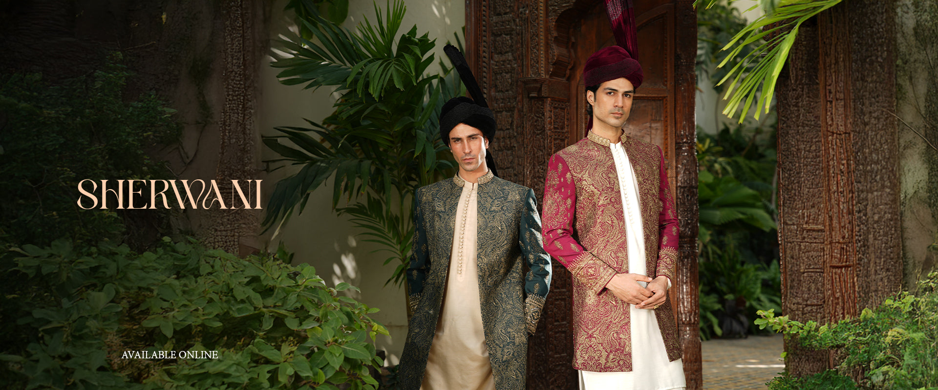 Emerald Green Embroidered Front Open Sherwani GS-5156
