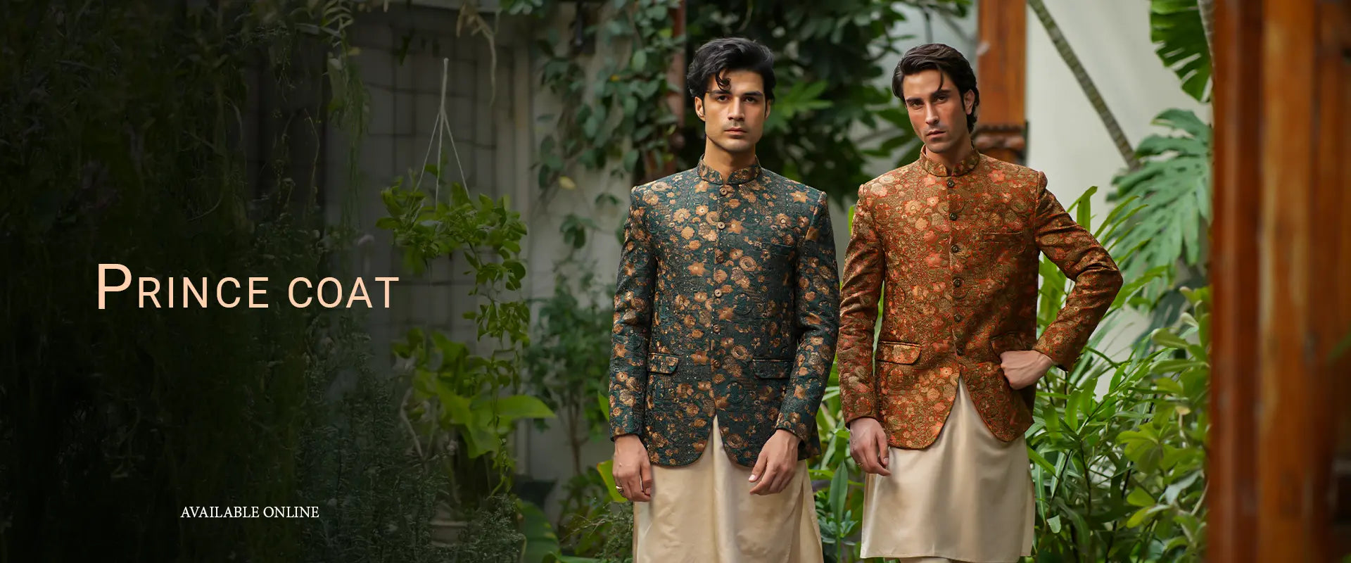 Rust Floral Embroidered Prince Coat PC-584