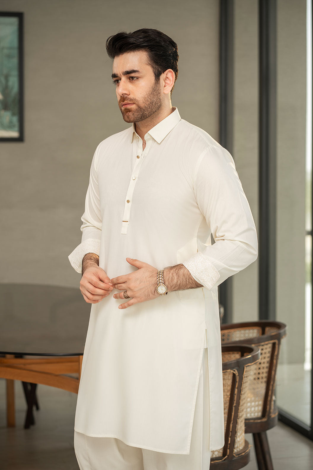 Graceful and elegant, the Cream Kameez Shalwar features intricate detailing for a sophisticated look. Perfect for weddings, festive occasions, and cultural gatherings.