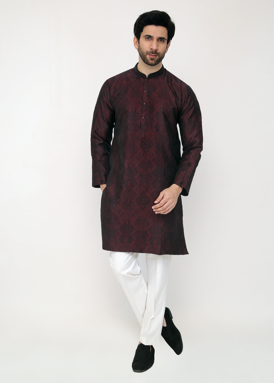 Embrace the perfect blend of luxury and craftsmanship with our Special Banarsi Kurta. Tailored for the man of refined taste, this kurta offers a timeless silhouette infused with rich tradition and modern elegance.