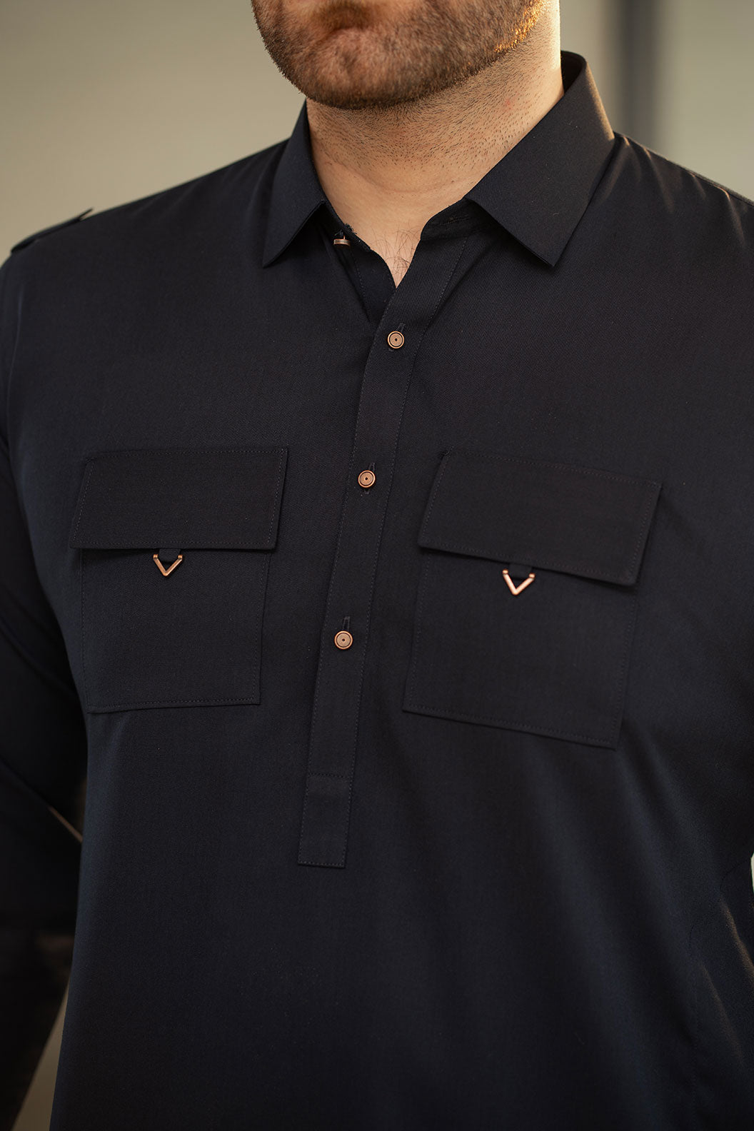 Our Navy Blue Double Pocket Kurta Trouser is made with a premium fabric. This Men's Kameez Trouser combines comfort, style, and elegance with its classic design. The unique blend ensures durability, providing a perfect fit for any occasion.