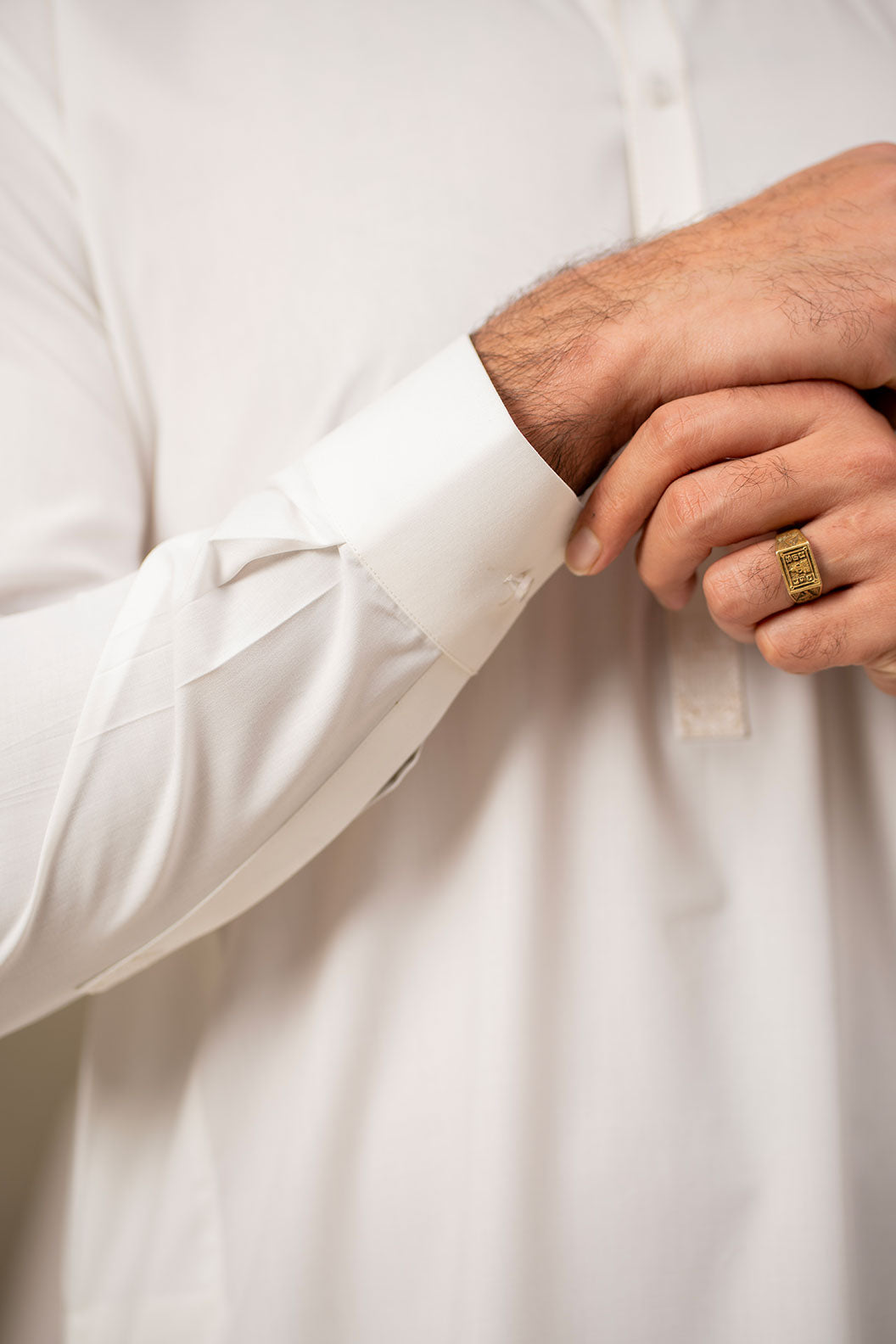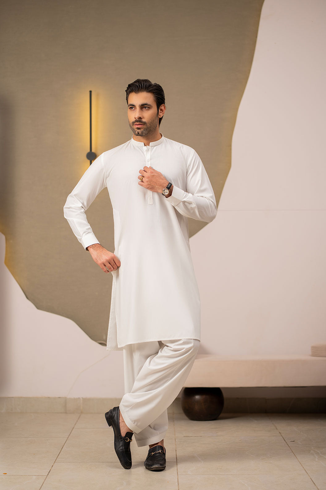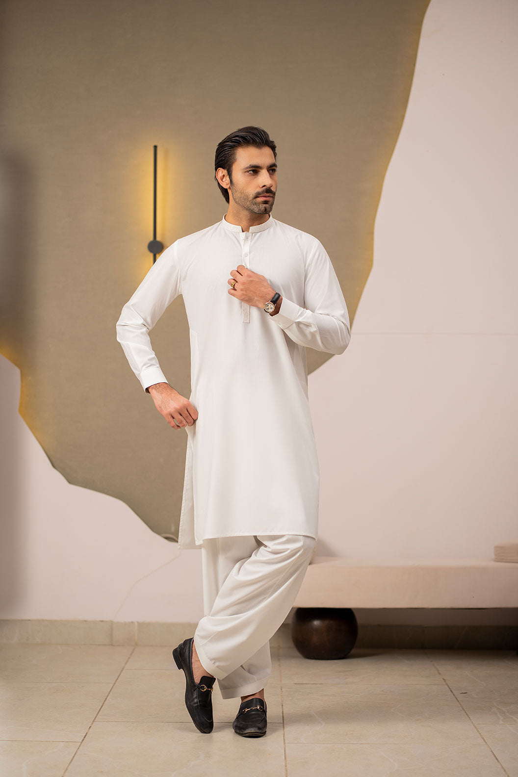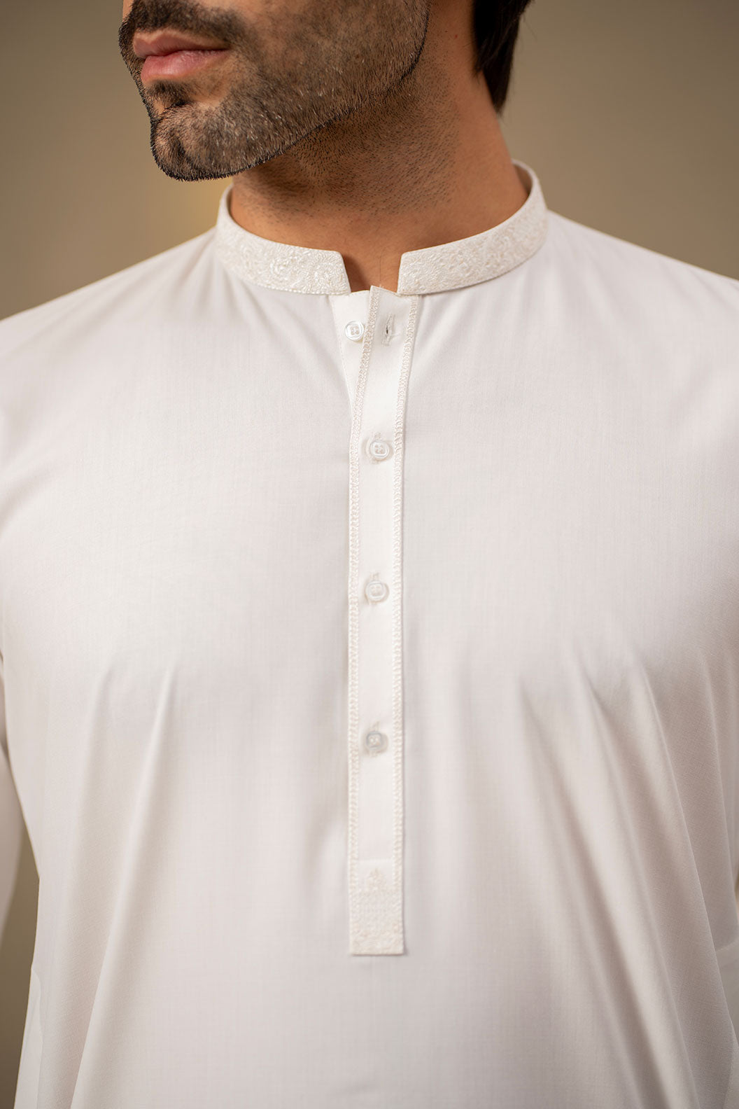 Graceful and elegant, the embroidered white men's kameez trouser features intricate detailing for a sophisticated look. Perfect for weddings, festive occasions, and cultural gatherings.
